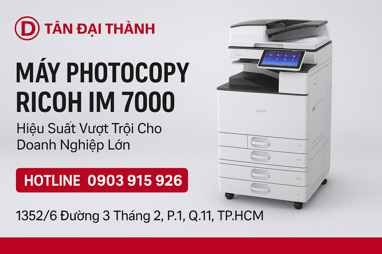 Là đối tác uy tín của Ricoh Việt Nam, Tân Đại Thành cung cấp các dòng máy photocopy Ricoh nhập khẩu chính hãng, bảo hành tận nơi và dịch vụ hậu mãi chuyên nghiệp.