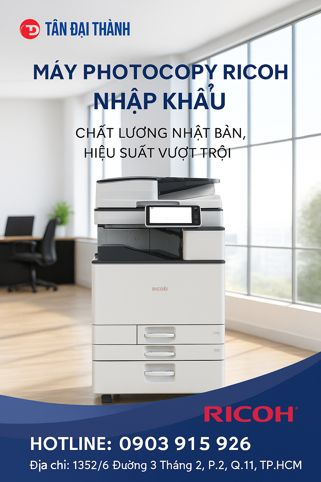 Tân Đại Thành tự hào là đối tác phân phối chính hãng các dòng máy photocopy Ricoh nhập khẩu tại TP.HCM. Chúng tôi hiểu rằng, với mỗi doanh nghiệp, máy photocopy không chỉ là thiết bị văn phòng, mà còn là công cụ hỗ trợ năng suất và hình ảnh chuyên nghiệp.