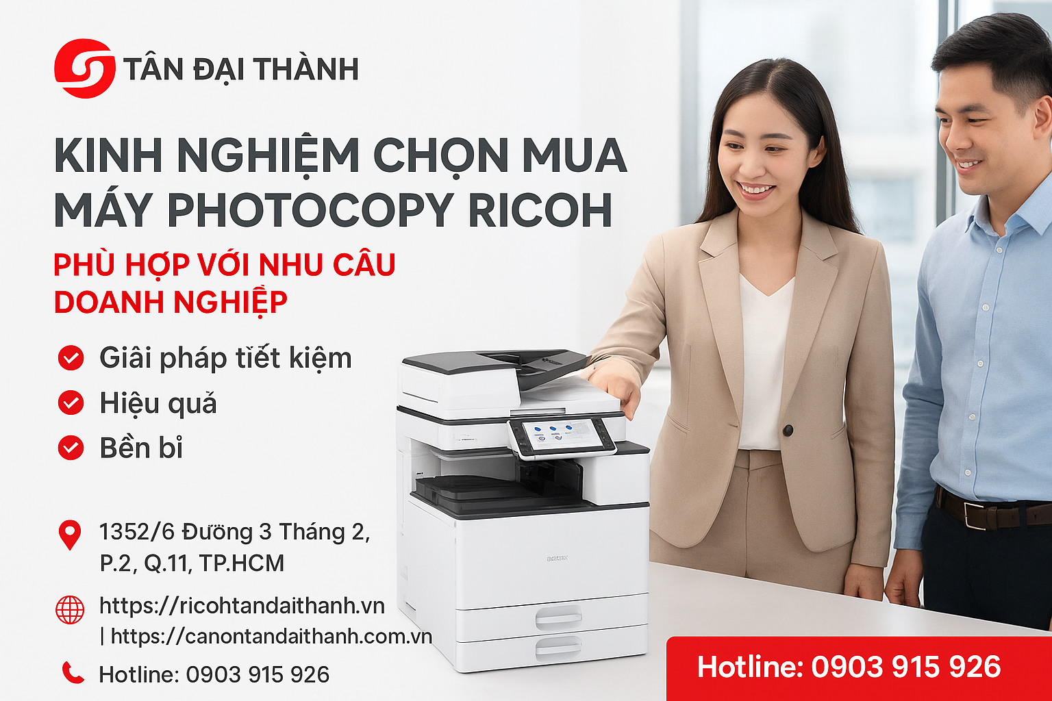 Trong thời đại công nghệ hiện nay, máy photocopy Ricoh không chỉ là thiết bị văn phòng thông thường mà còn là trợ thủ đắc lực giúp doanh nghiệp tiết kiệm thời gian, chi phí và tăng hiệu suất làm việc. Tuy nhiên, để chọn được dòng máy Ricoh phù hợp với nhu cầu không phải là điều dễ dàng. Hãy cùng Tân Đại Thành tìm hiểu những kinh nghiệm hữu ích dưới đây!