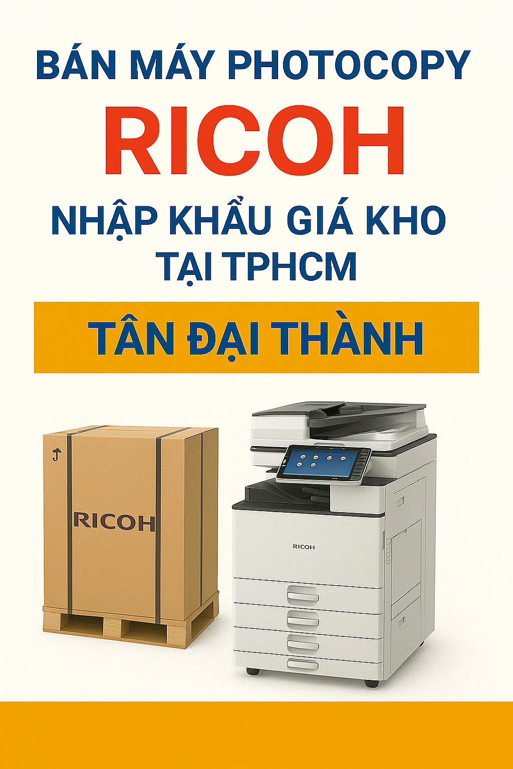 Nếu bạn đang tìm nơi mua máy photocopy Ricoh nhập khẩu uy tín – giá kho – bảo hành dài hạn, thì Tân Đại Thành là lựa chọn hàng đầu tại TP.HCM. Với hơn 15 năm kinh nghiệm cung cấp thiết bị văn phòng, chúng tôi cam kết mang đến cho doanh nghiệp những dòng máy Ricoh bền bỉ – tiết kiệm – hiệu suất cao, kèm mức giá tận kho cạnh tranh nhất thị trường.