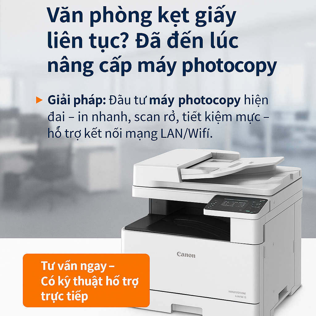 👉 Giải pháp: Đầu tư máy photocopy hiện đại – in nhanh, scan rõ, tiết kiệm mực – hỗ trợ kết nối mạng LAN/Wifi.