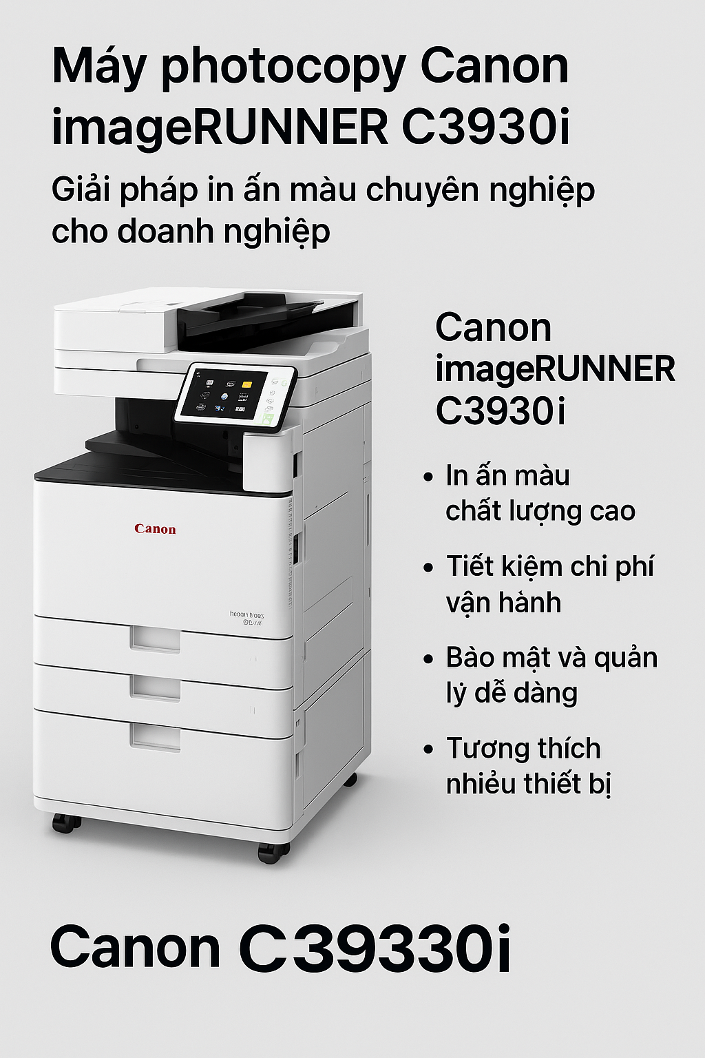 Canon Tân Đại Thành – Đại lý ủy quyền chính thức của Canon tại TP.HCM, cam kết cung cấp máy photocopy Canon C3930i chính hãng 100%, giá cạnh tranh, kèm theo dịch vụ lắp đặt, hướng dẫn sử dụng và bảo hành tận nơi.