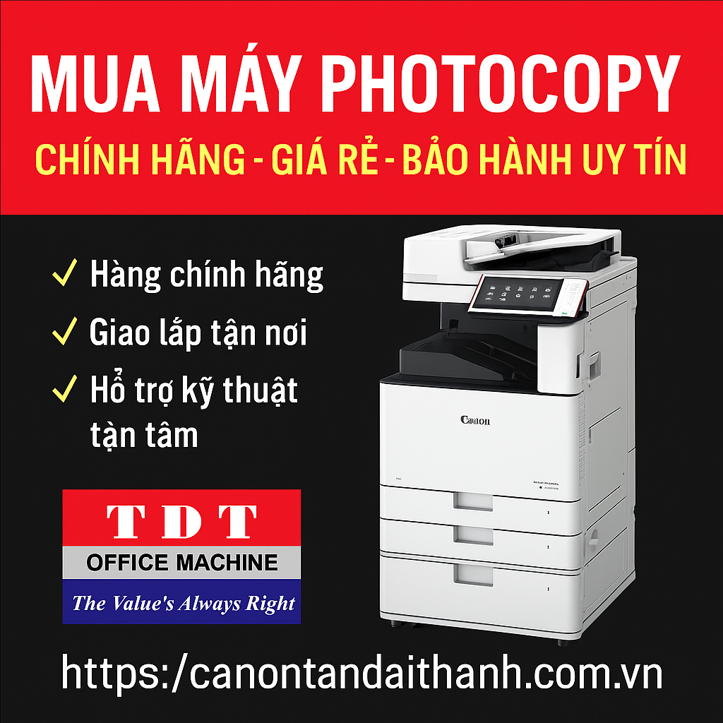Máy photocopy Canon từ lâu đã trở thành lựa chọn hàng đầu của các doanh nghiệp, văn phòng, trường học nhờ vào sự ổn định, tiết kiệm và độ bền vượt trội. Với đa dạng mẫu mã từ máy đen trắng đến máy photocopy màu, Canon đáp ứng đầy đủ mọi nhu cầu in ấn, sao chụp, scan và fax chuyên nghiệp.