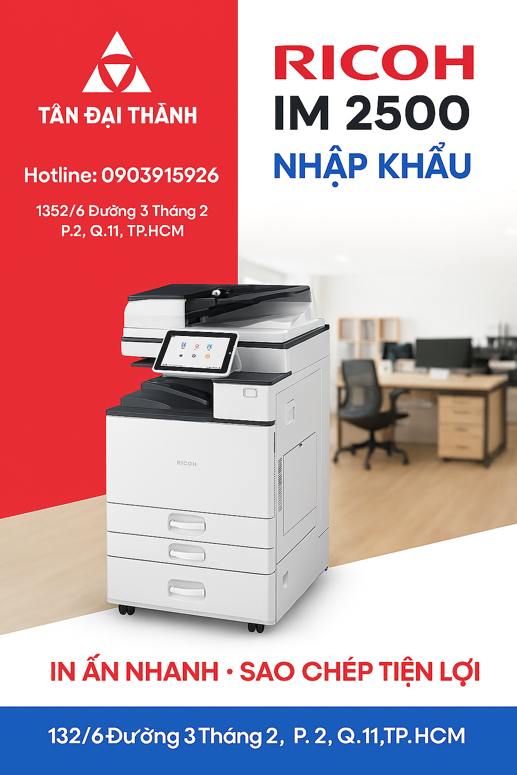 Trong môi trường văn phòng hiện đại, việc sở hữu một chiếc máy photocopy chất lượng cao là điều cần thiết để nâng cao hiệu quả công việc. Máy photocopy Ricoh IM 2500 nhập khẩu là giải pháp tối ưu, mang đến hiệu suất in ấn, sao chép nhanh chóng, chất lượng vượt trội và độ bền cao, đáp ứng nhu cầu của doanh nghiệp vừa và nhỏ.