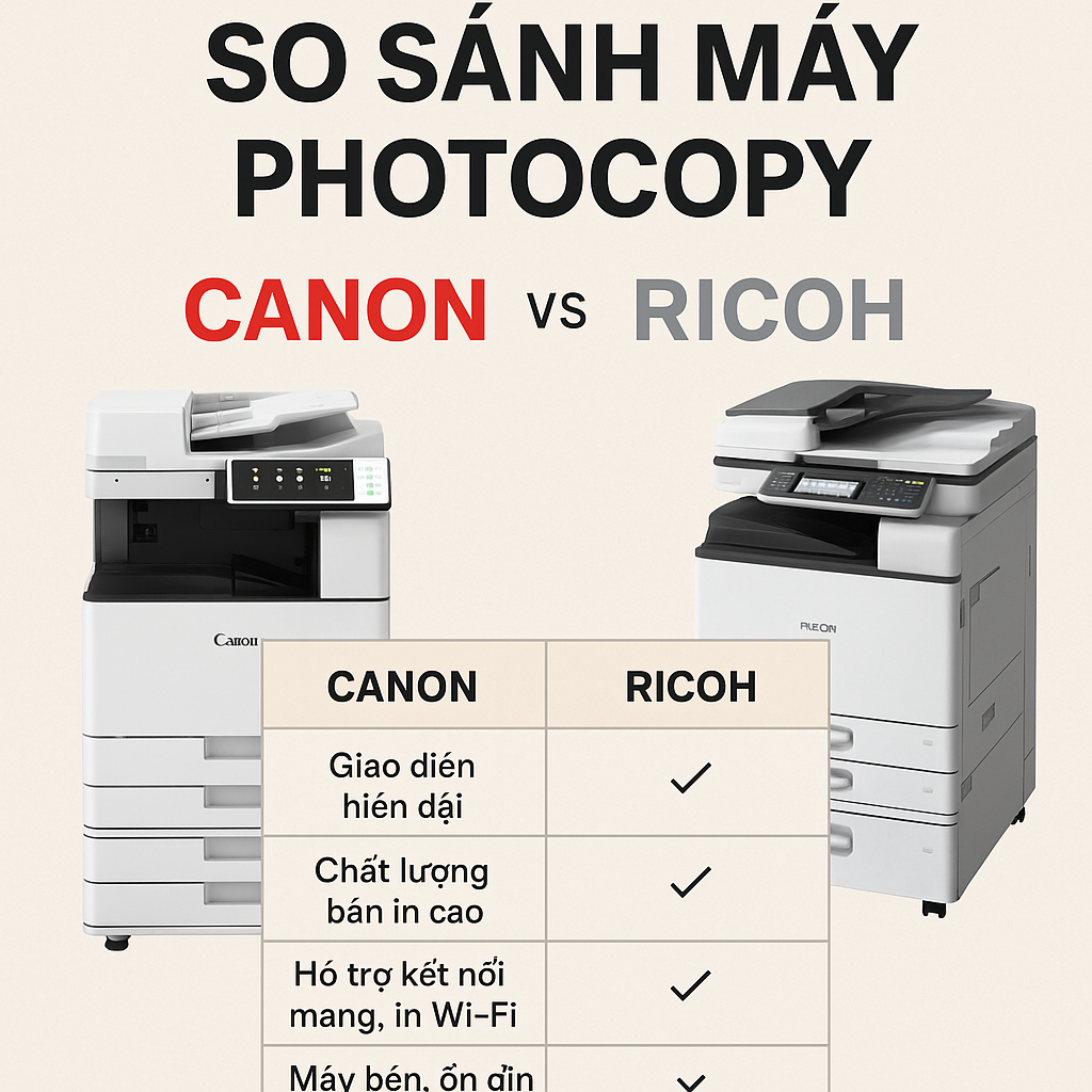 Việc lựa chọn máy photocopy phù hợp giúp doanh nghiệp tiết kiệm thời gian, chi phí và nâng cao hiệu quả công việc. Trong bài viết này, Canon Tân Đại Thành sẽ giúp bạn so sánh máy photocopy Canon và Ricoh – hai thương hiệu phổ biến nhất hiện nay – để bạn có được sự lựa chọn tốt nhất.