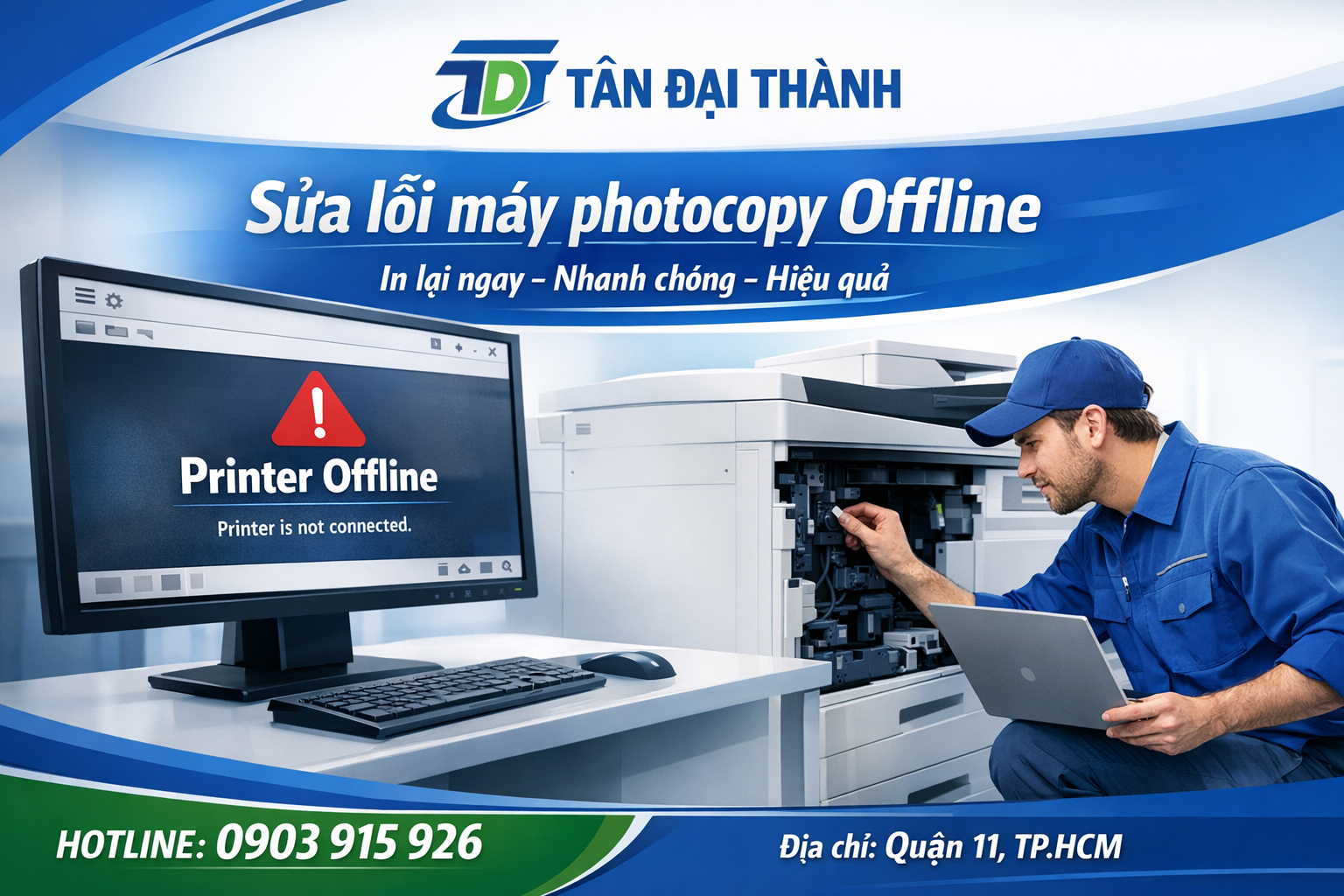 Tân Đại Thành còn cung cấp dịch vụ sửa máy photocopy tại nhiều quận trên địa bàn TP.HCM, trong đó có Quận 1, với cam kết có mặt nhanh – xử lý đúng lỗi – giúp máy hoạt động ổn định trở lại.